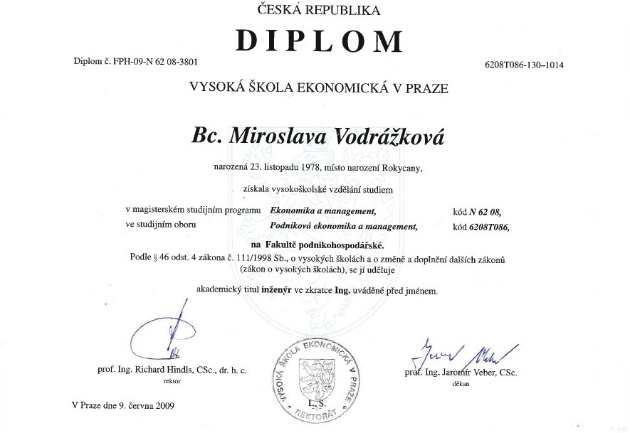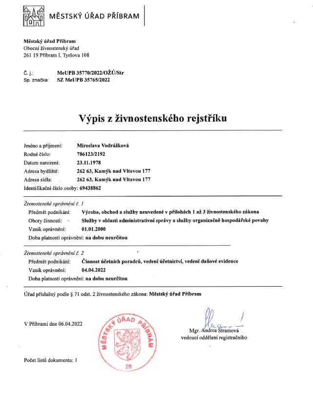 Jmenuji se Mirka Vodrážková, vystudovala jsem Vysokou školu ekonomickou v Praze a současně jsem byla i ligovou hráčkou v basketbalu. Díky VŠE se velmi dobře vyznám ve spletitém světě čísel a účetních předpisů, a sport mě zase naučil vytrvalosti, preciznosti a nevzdávat se ani v nepříjemných situacích.